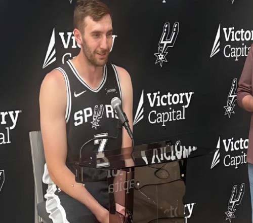 而他的马刺队友们把这个画面印在短袖上,直接让这件短袖迅速成为圣安东尼奥当地最热销的球队周边,从随队记者到退役老将格里芬,都曾公开表示想要。